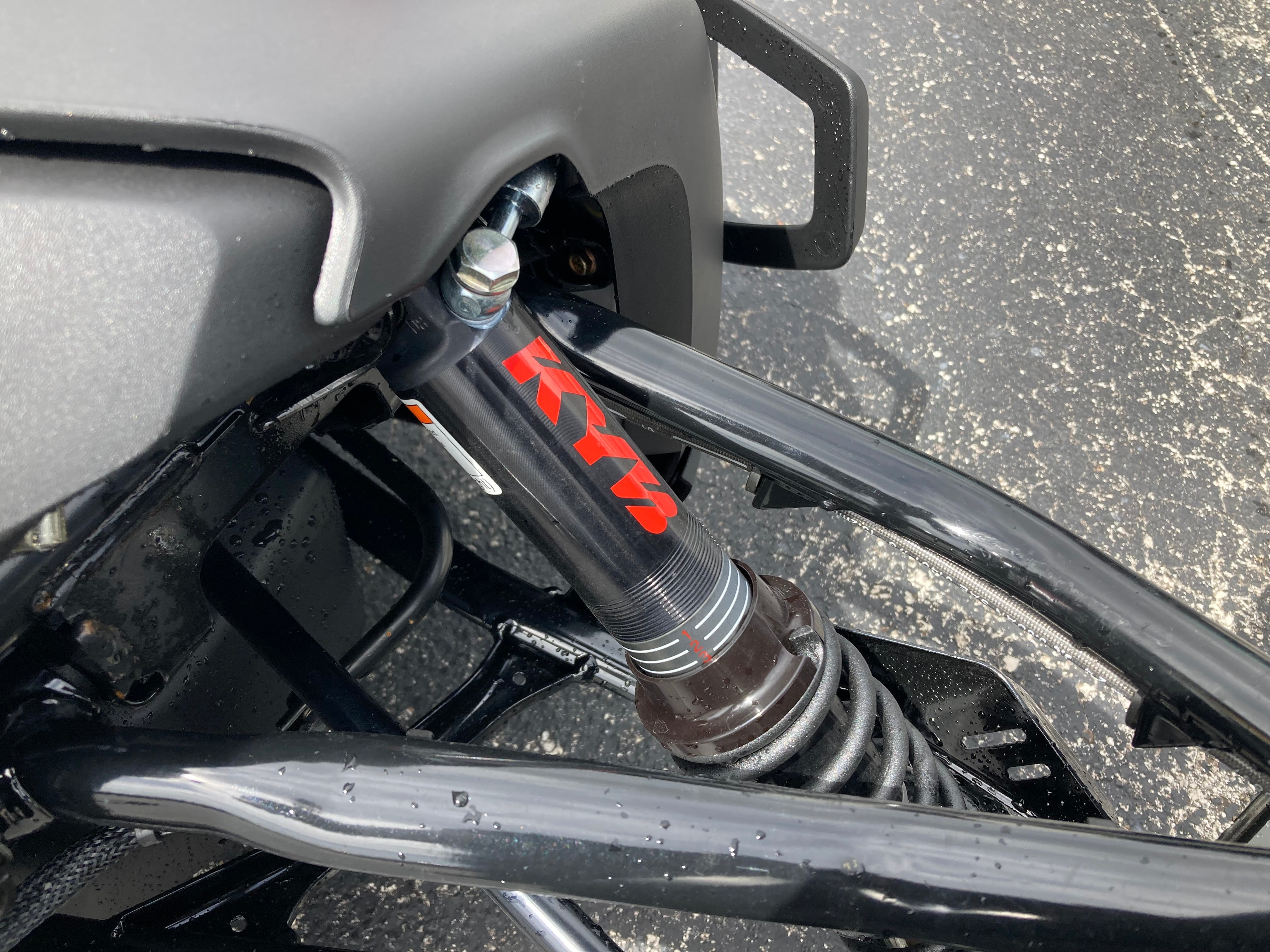 Multi-link mono swing arm with KYB HPG shock, remote adjuster |